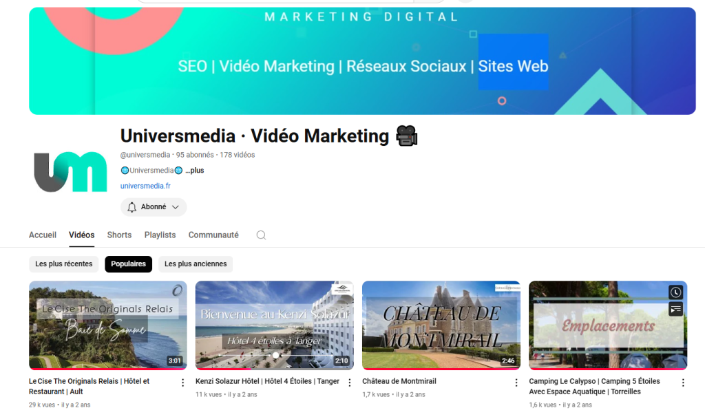 Le Vidéo Marketing est vital pour se positionner sur les moteurs de recherche. Chez Universmedia, nous créons des vidéos personalisées, spécialement conçues pour YouTube.